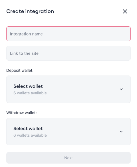 - Withdraw wallet - the wallet to be used for withdrawals. This wallet will receive funds when using withdrawal endpoints (currently in development).