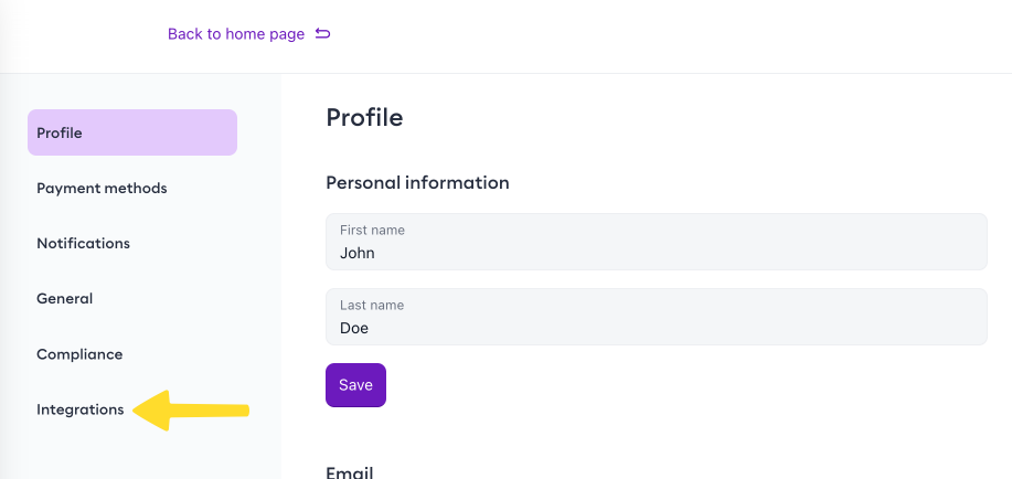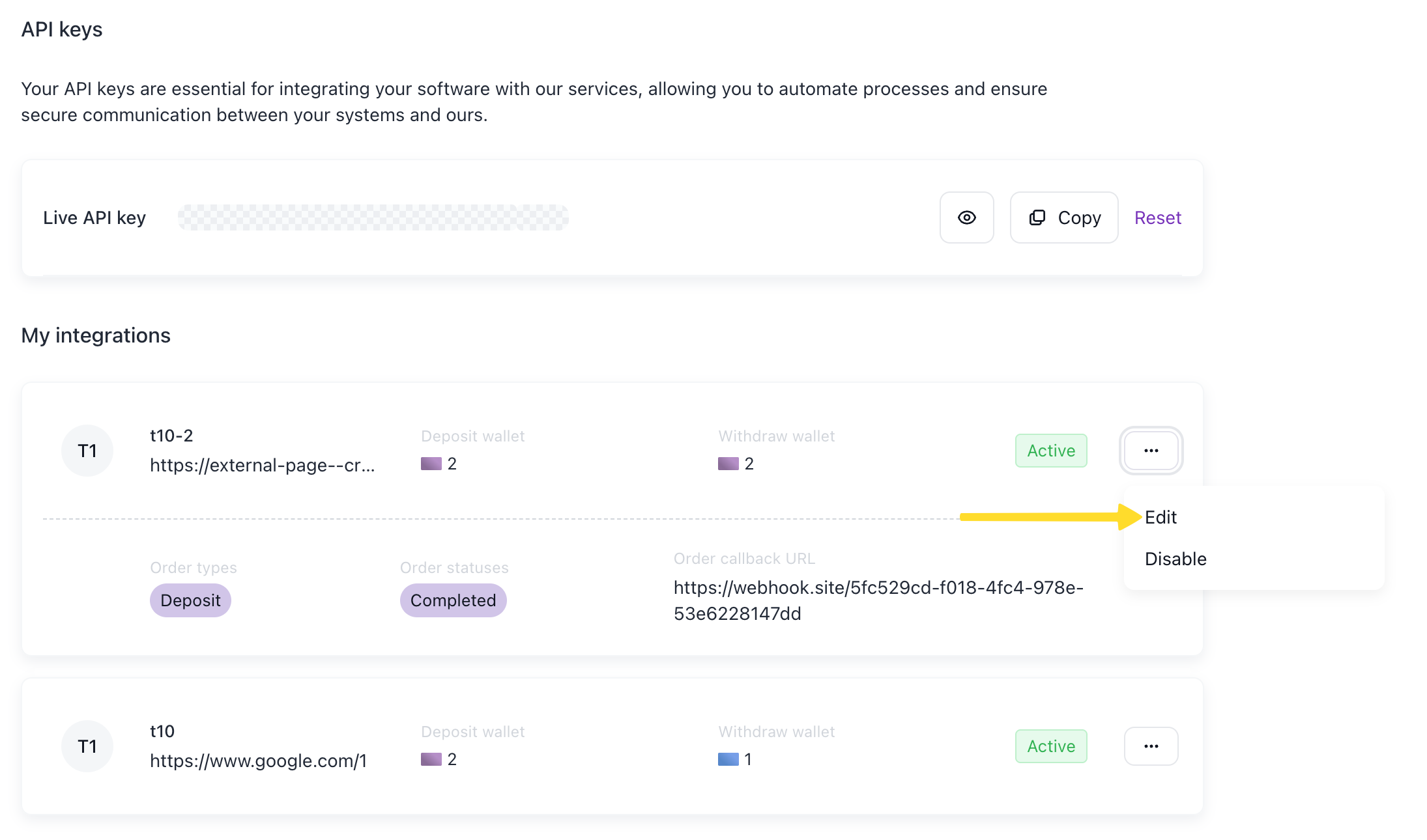 - Scroll to the My integrations section, locate the integration you want to edit and click the ••• button → select Edit.